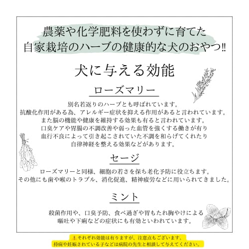 農薬や化学肥料を使わずに育てた自家栽培のハーブの健康的な犬のおやつ‼︎
